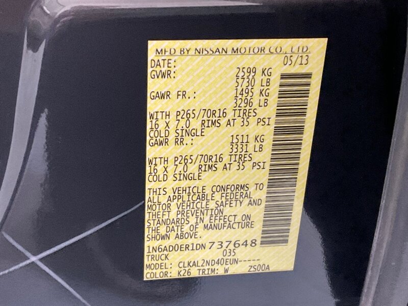 2013 Nissan Frontier SV Crew Cab RWD / 4.0L 6Cyl / ZERO RUST