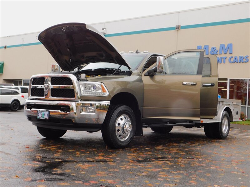 3 MONTH / 3000 MILES WARRANTY ......... This is a 2014 Dodge Ram3500 Laramie Package Crew Cab 4-Door 4X4 ( Four Wheel Drive) 6.7 Liter 6Cyl CUMMINS DIESEL w/ 6-SPEED MANUAL , DUALLY , LONG BED ( 8 FT) , FLAT BED , Leather Heated Seats , Navigation , Backup Camera ...... This LOCAL Ram Pickup , has a Clean title & Clean carfax history . NO RUST & Excellent Condition inside & out. Very well kept & maintained . Equipped with Power seat , Leather seats , Heated seats , Navigation , Rear View Camera , Towing package , Factory trailer brake controller, Power sliding rear window , Bluetooth tooth wireless and so much more ........ The TIRES ARE EXCELLENT .... It drives great & looks very clean . 144K Miles . Vin#3C7WRTCL6EG113500 Please call or text 503-758-7444 / 503-935-9403